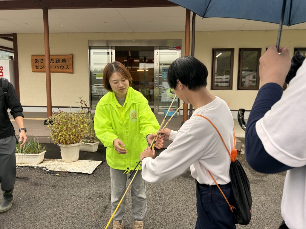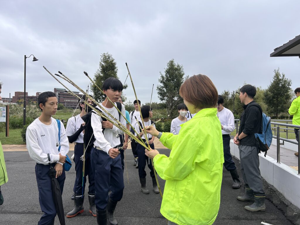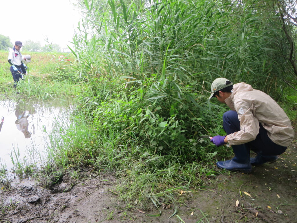 今年度は、ミズアオイ池の整備に加えカヤネズミ保全の通路の草刈りや、駆除活動として行っているザリガニ釣り用の釣り竿の作成もしてくれました。