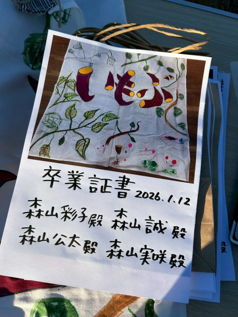 一年間皆さんのおかげで、無事に芋部終了できました。感謝です。またあさはた緑地に遊びに来て下さいね♩