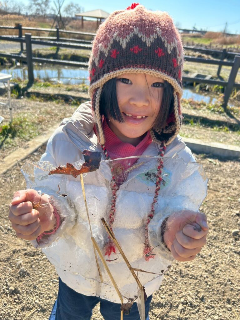 休み時間には、大きな氷を見つけた人も!