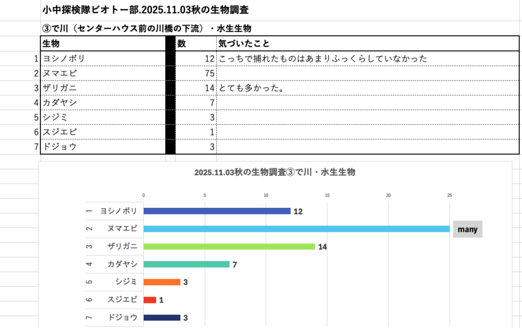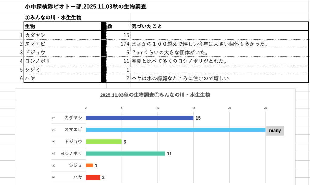 なんとたくさんのドジョウが見つかり、十匹以上が確認されました🥳✨大きな個体が多く、みんなの川をドジョウに好まれる環境に整えることができていると嬉しく思いました😆