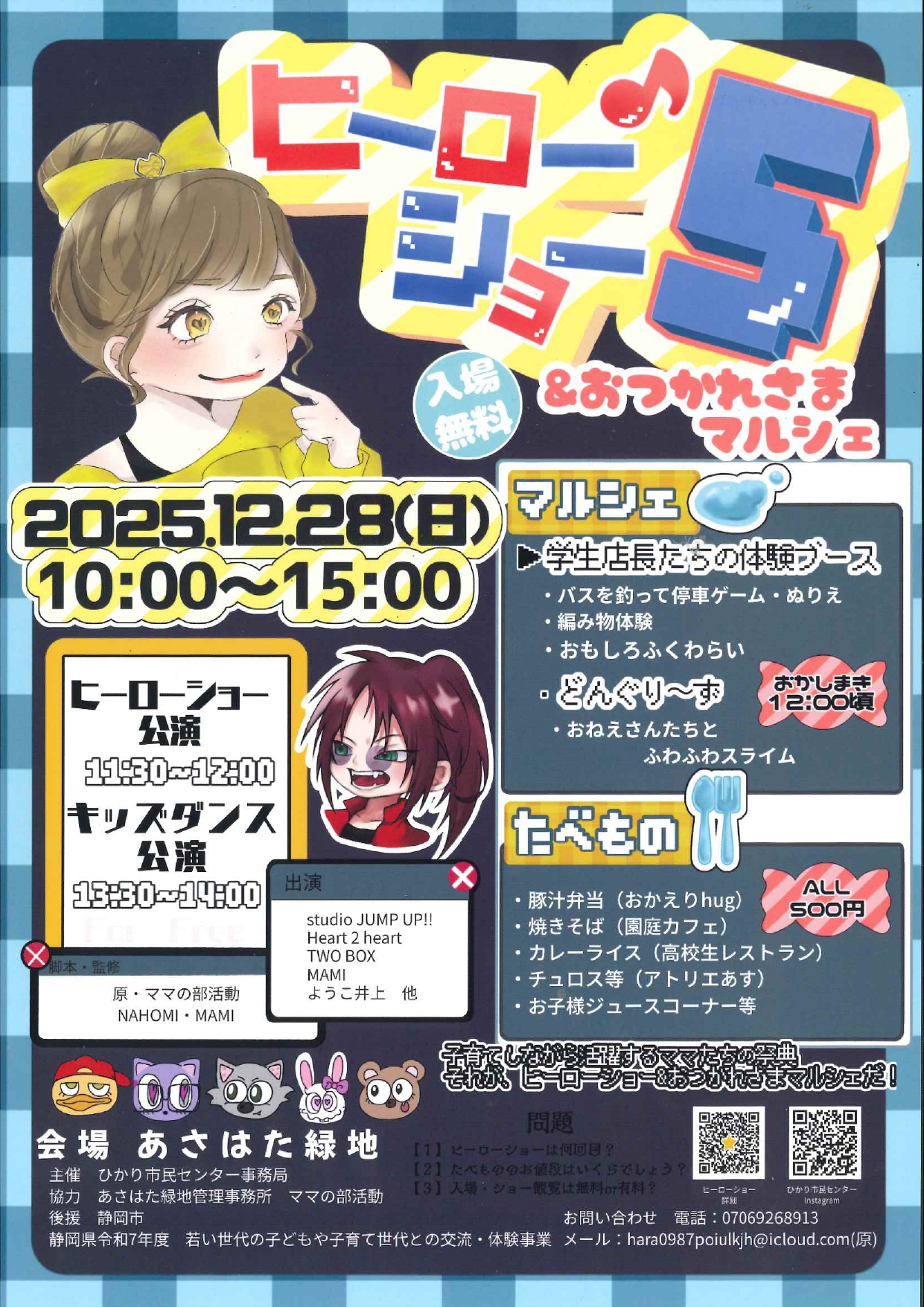 あさはた緑地で親子向けのマルシェが開催されます。社会課題をテーマに脚本された「ヒーローショー」の開催の他、美味しい食べ物やワークショップの出店も予定されています。お楽しみに!