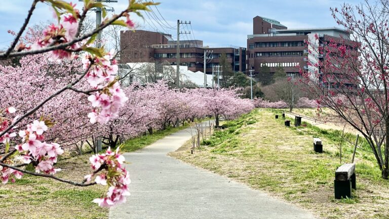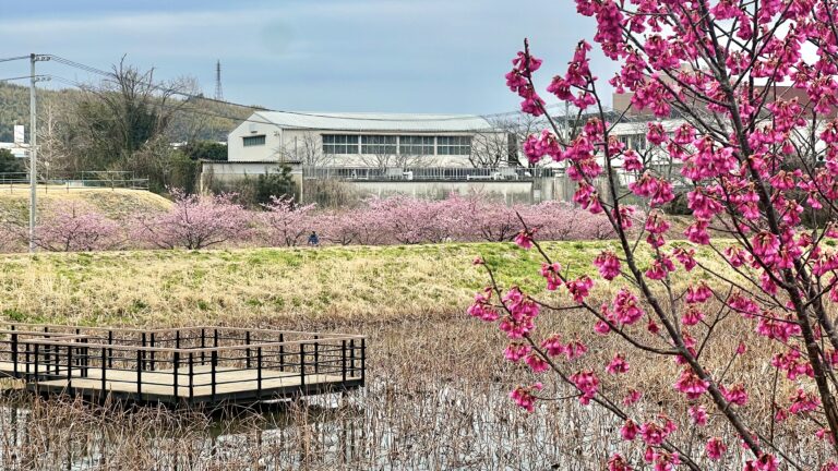 2月になると、公園の道路を挟んだ向かいには、遊水さくら(河津桜)が見頃を迎えます。今年も、麻機学区自治会連合会主催の「遊水さくらまつり」の開催が決定しました。当日は、露店や太鼓の演奏等も催されます。ぜひ皆様お越しください。