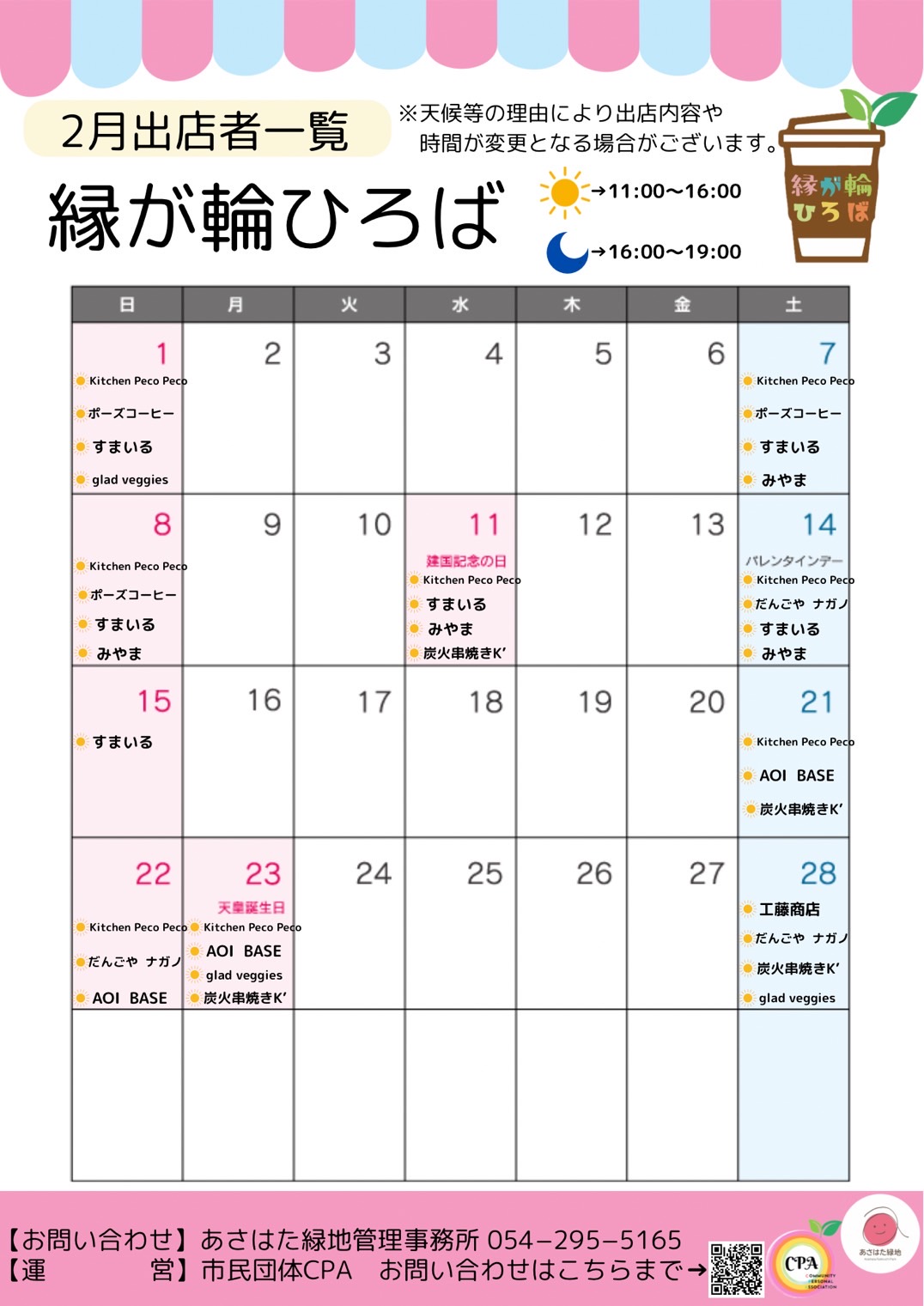 「縁が輪ひろば」は、あさはた緑地管理事務所が設置するスペースで、「CPA」に加盟する個人事業主の皆さんが出店している場所です。CPAは静岡中心で活動をしている個人事業主の市民団体です。「個人事業主同士のつながりと協力」を目的とした活動をしています。一人ではできないことも、人とひとが繋がることで大きな力となり成し遂げることができます。静岡県でがんばっている個人事業主様が繁栄すれば、地域活性化に繋がりより良い「県」になるのではないかと考えています。CPAは地域のために何ができるのかを考え、これからも活動を行って参ります。